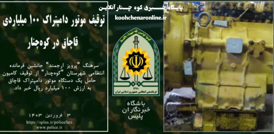 جانشین فرمانده انتظامی شهرستان “کوهچنار” از توقیف کامیون حامل یک دستگاه موتور دامپتراک قاچاق به ارزش ۱۰۰ میلیارد ریال خبر داد.