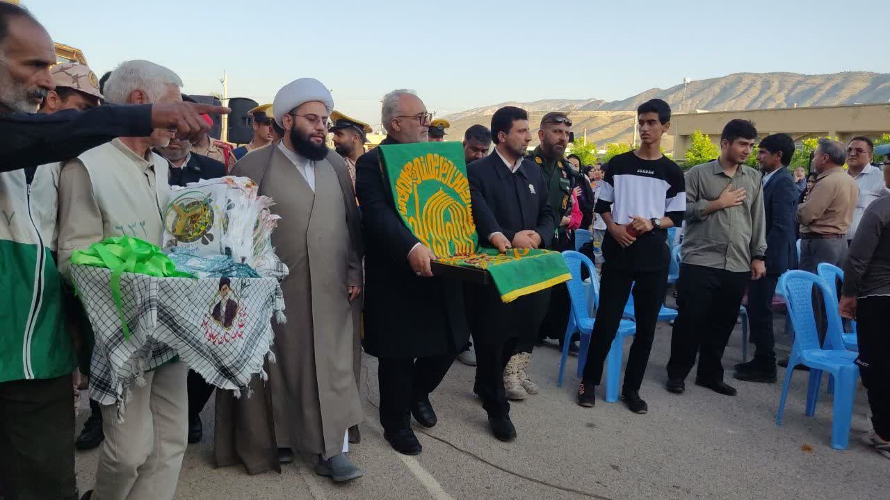 خادمین امام رئوف در شهرستان کوه چنار حضور یافتند و استقبال از خادمین در گلزار شهدا شهرقائمیه با حضور مسئولین شهرستان صورت گرفت
